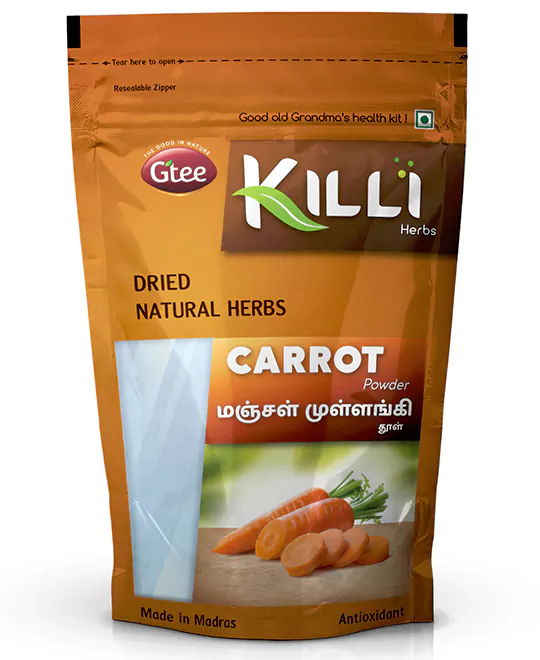Mix one teaspoon (3-5g) of Killi Carrot powder to hot water or hot milk. Stir it well, and serve. Add palm sugar to enhance the taste, if required.