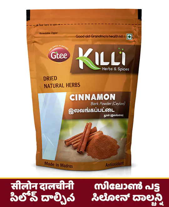 Mix half a teaspoon (2-3g) of Killi Ceylon Cinnamon bark powder with 150ml of hot water and serve hot. Can also be taken mixing with honey or lemon.