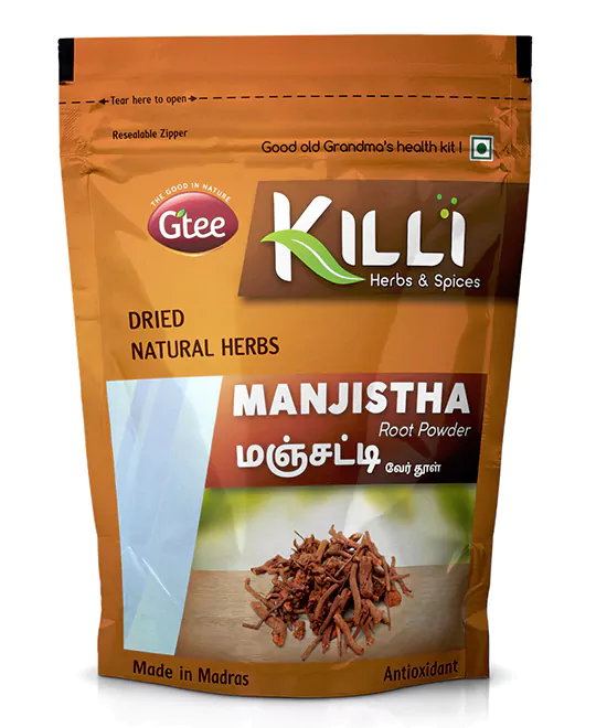 Mix a teaspoon (3g) of Killi Manjistha root powder with 150ml of warm water and drink it daily. Mix it with rose petal, sandalwood, and rose water for application on the face. Make a paste by mixing the powder with henna and water and apply it over the hair. Wash it off after 2-3 hours.