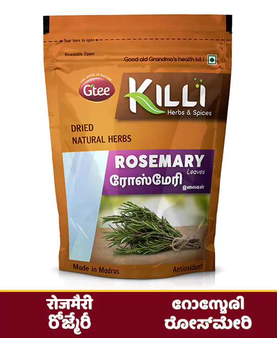 Mix 2g of Killi Rosemary Leaves with 150ml of hot water, filter after 2-3 minutes and serve. It can be added to any dish to enhance its taste and flavour. Can also be mixed with Green Tea and Black Tea to give pleasant aroma.