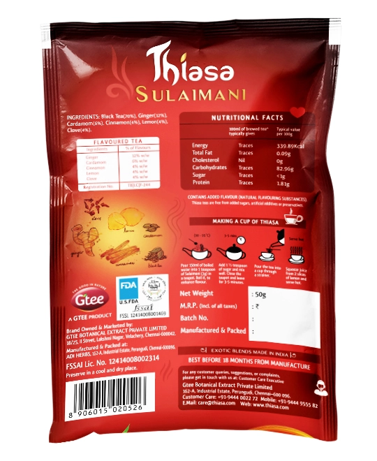 Thiasa® brings you a fascinating concoction of sunset-coloured ancient Sulaimani Chai that induce a bit of love within yourself. From the Arabian lands to the Malabar coast, the Ambrosial Sweet-Sour Tea is blended with aromatic and digestive herbs along with a zesty twist. The feel of richness and smooth swirls will ever leave you aside.